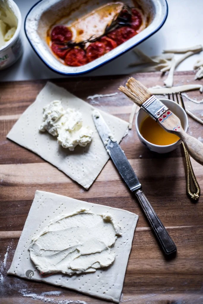 There is something very cozy about working with pastry in the early morning light. Maybe it is the anticipation of the warmth from the soon-to-be-turned-on oven, then there is that tacit pleasure of rolling out the dough, pinching it into shape. Perhaps, it is the thrill of what is oft a sweet becoming an exciting savory bite. Or, quintessentially, it is all of the above! :)